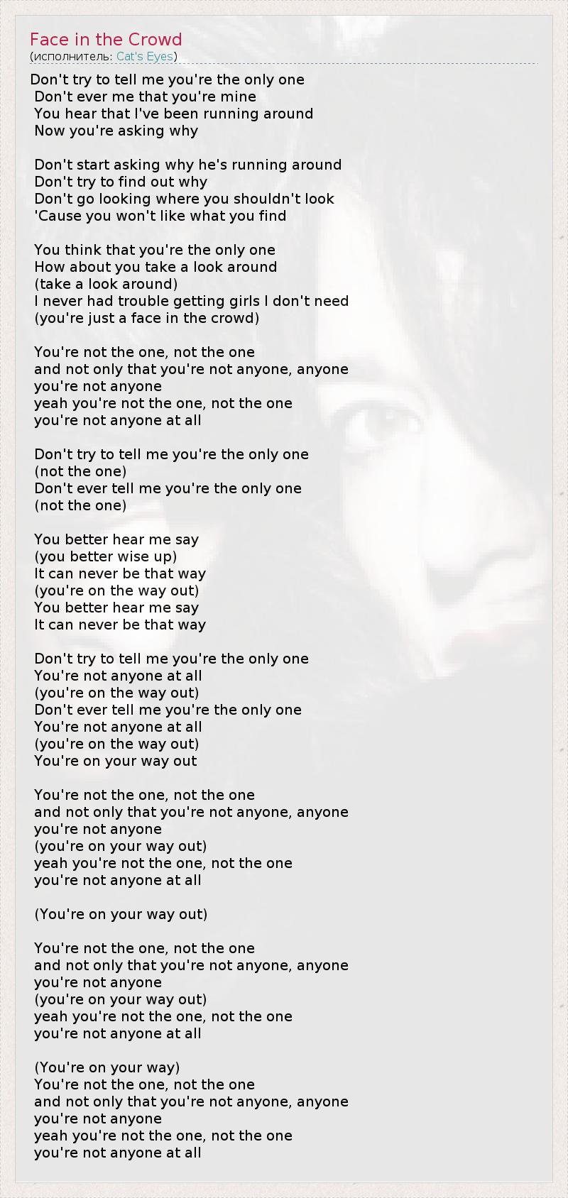 А как ты думаешь, о чем песня "Face in the Crowd" ?