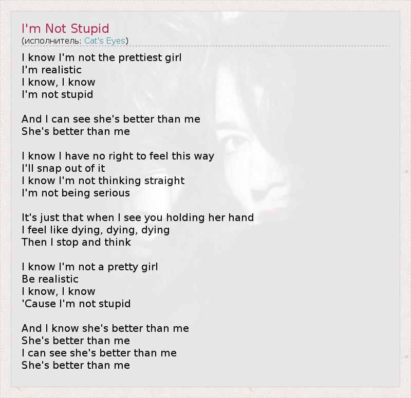 А как ты думаешь, о чем песня "I'm Not Stupid" ?