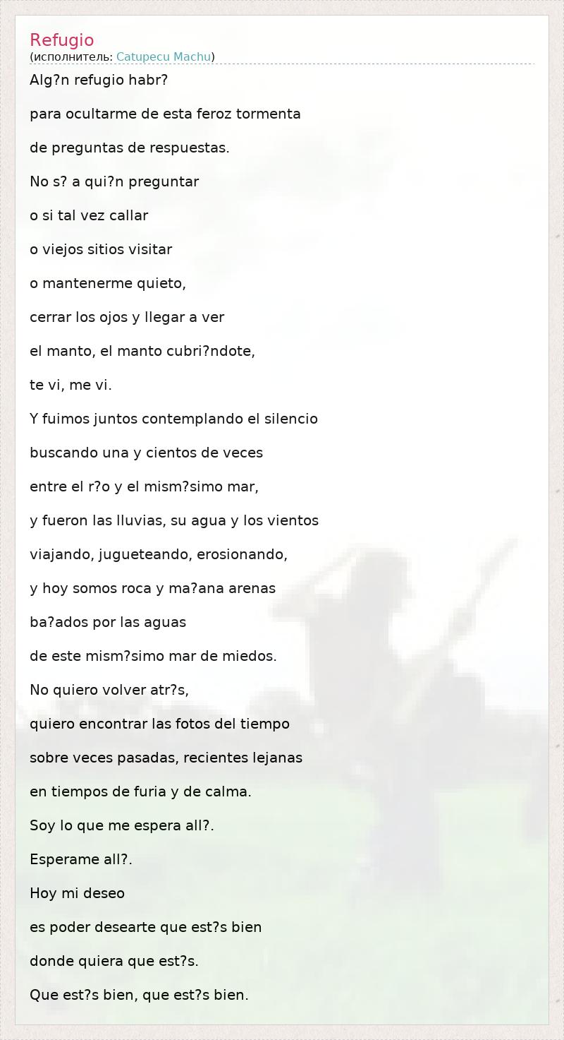 А как ты думаешь, о чем песня "Refugio" ?