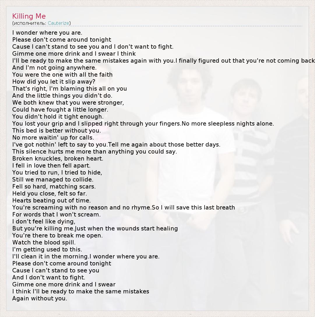 А как ты думаешь, о чем песня "Killing Me" ?