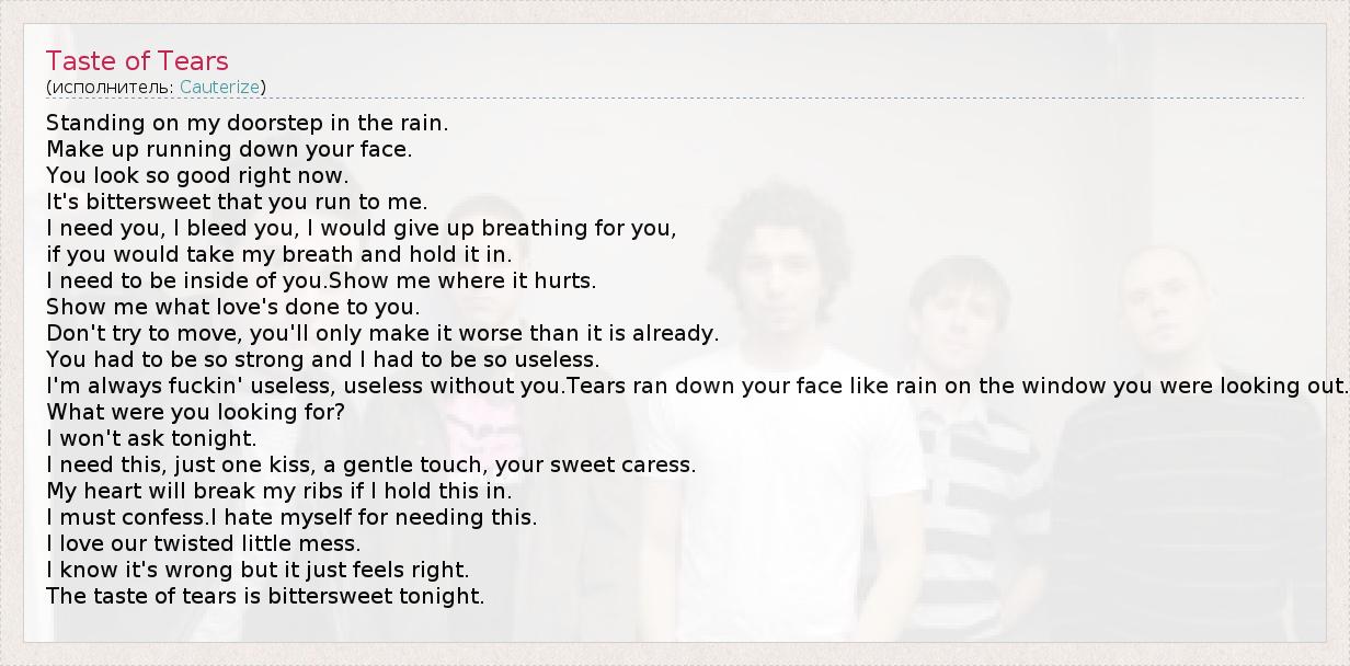 А как ты думаешь, о чем песня "Taste of Tears" ?