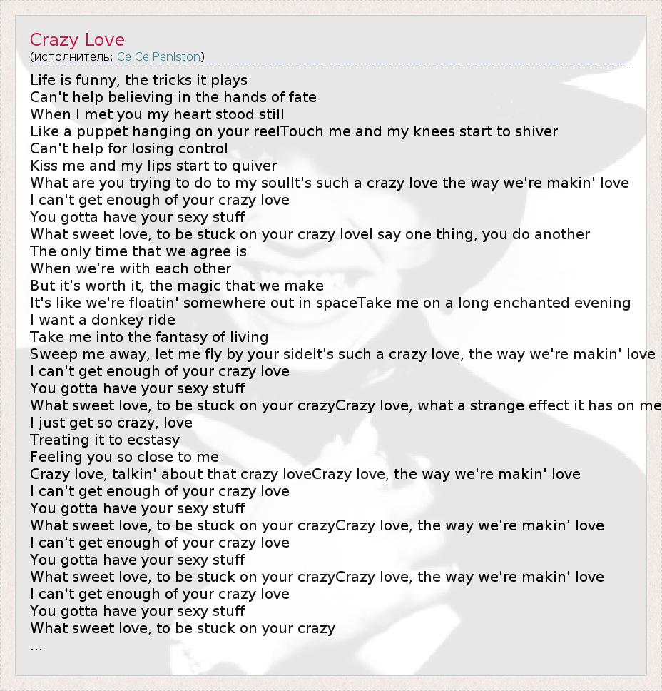 А как ты думаешь, о чем песня "Crazy Love" ?