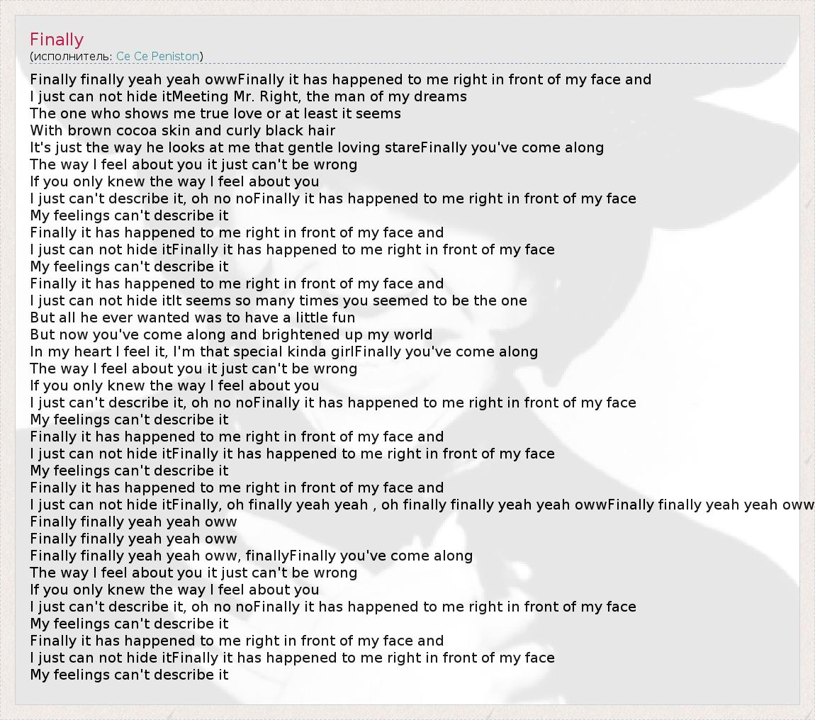 А как ты думаешь, о чем песня "Finally" ?