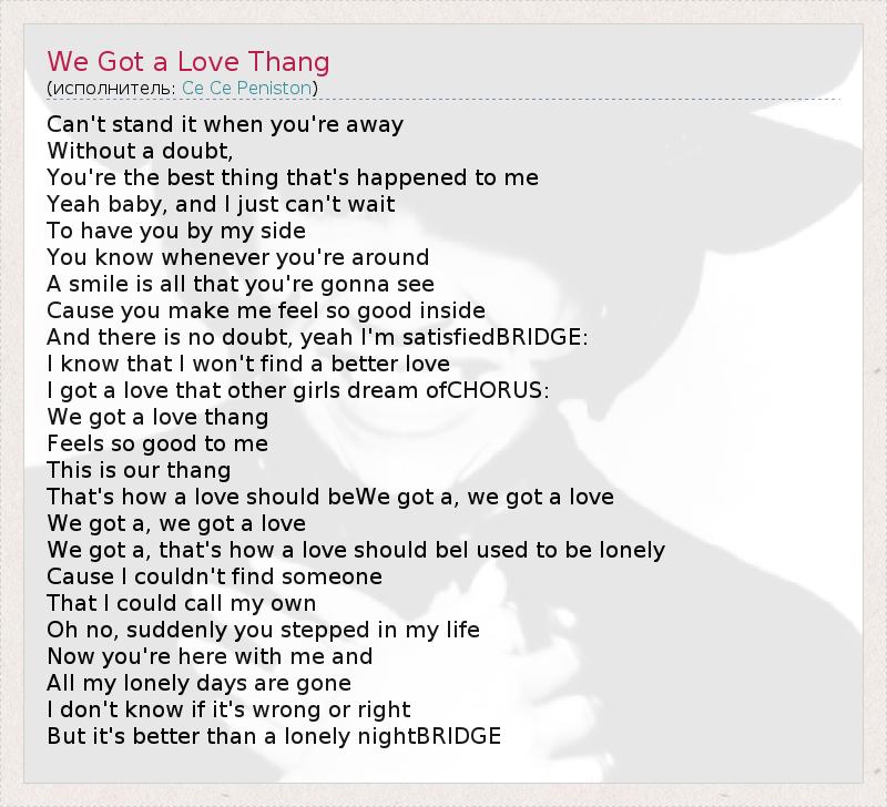 А как ты думаешь, о чем песня "We Got a Love Thang" ?