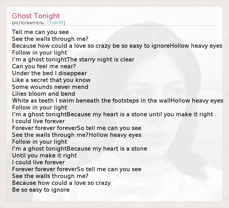 А как ты думаешь, о чем песня "Ghost Tonight" ?