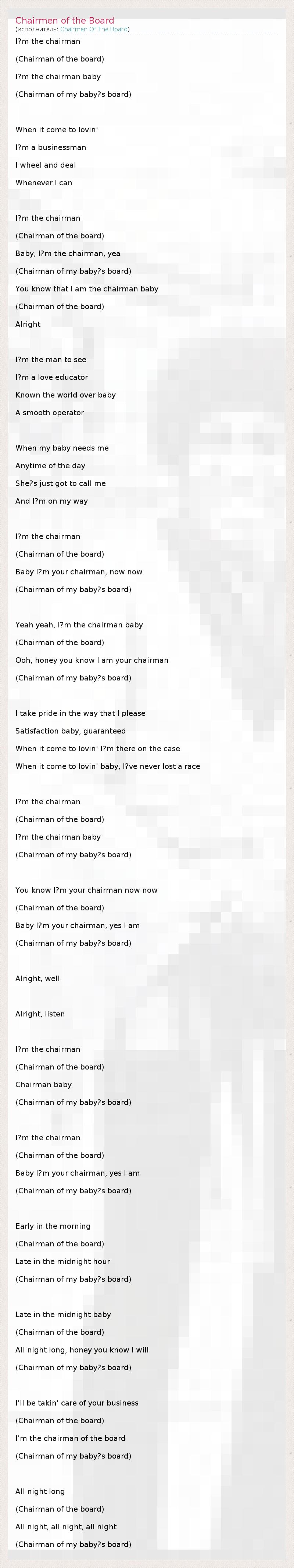 А как ты думаешь, о чем песня "Chairmen of the Board" ?