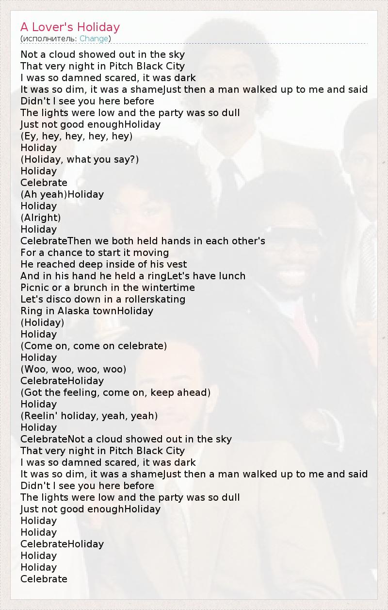 А как ты думаешь, о чем песня "A Lover's Holiday" ?