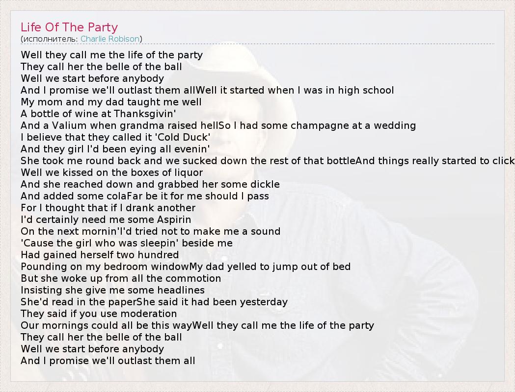 А как ты думаешь, о чем песня "Life Of The Party" ?