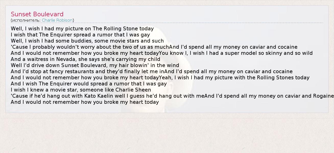 А как ты думаешь, о чем песня "Sunset Boulevard" ?