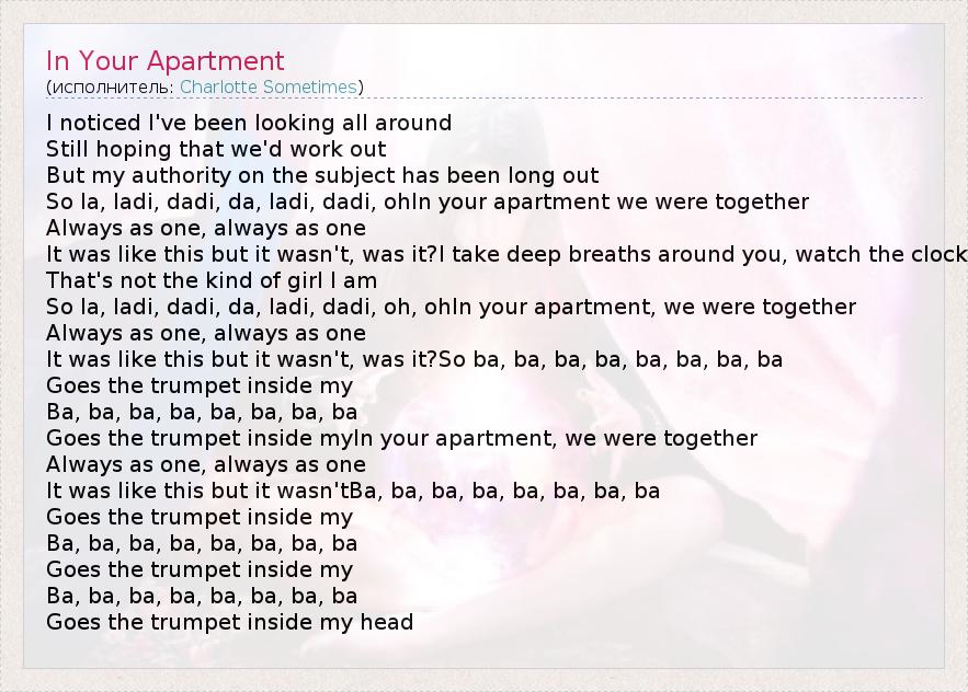 А как ты думаешь, о чем песня "In Your Apartment" ?