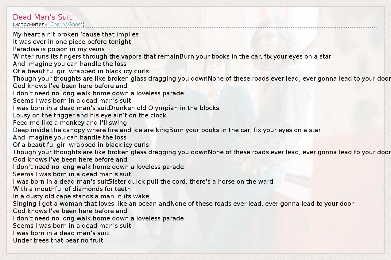 А как ты думаешь, о чем песня "Dead Man's Suit" ?