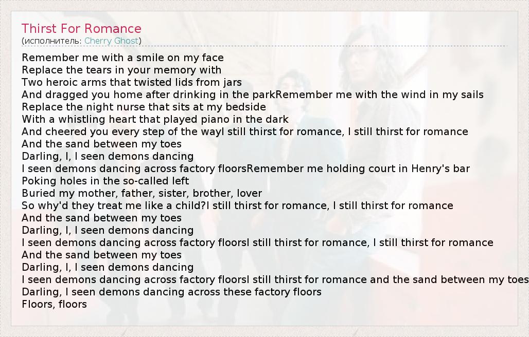 А как ты думаешь, о чем песня "Thirst For Romance" ?