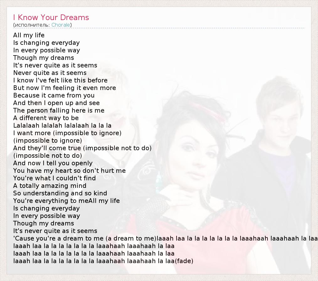 А как ты думаешь, о чем песня "I Know Your Dreams" ?