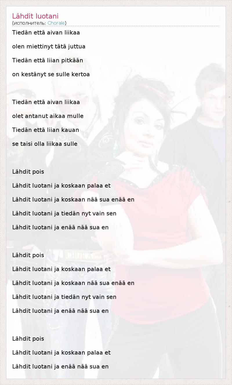 А как ты думаешь, о чем песня "Lähdit luotani" ?