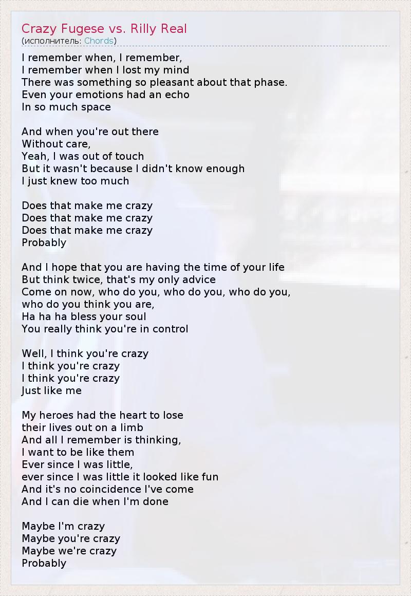 ГлавнаяИсполнителиChordsCrazy Fugese vs. Rilly Real