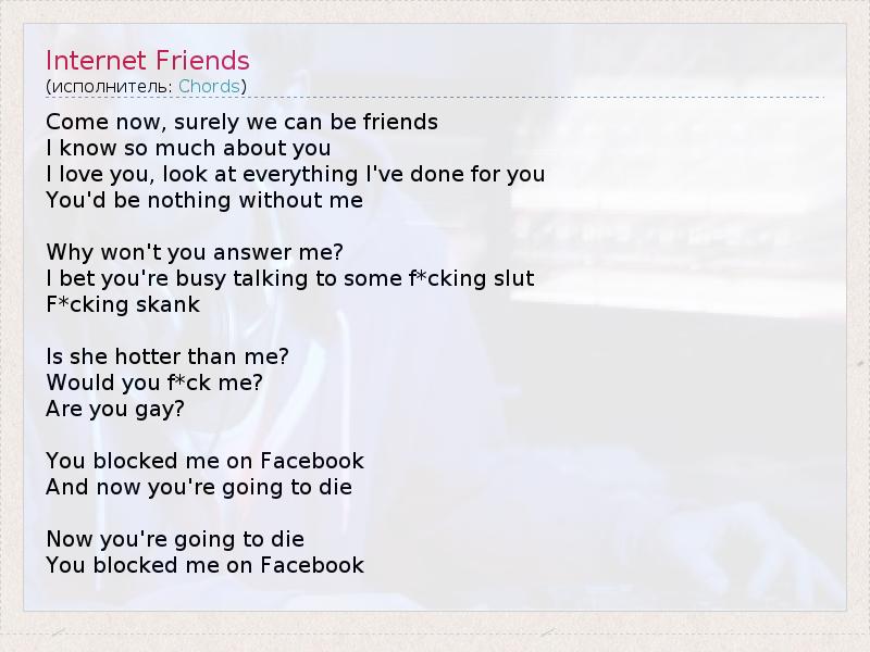 А как ты думаешь, о чем песня "Internet Friends" ?