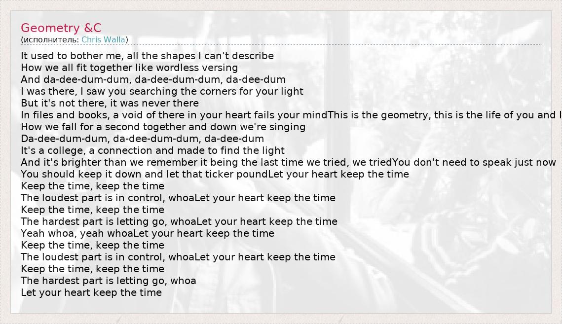 А как ты думаешь, о чем песня "Geometry &C" ?