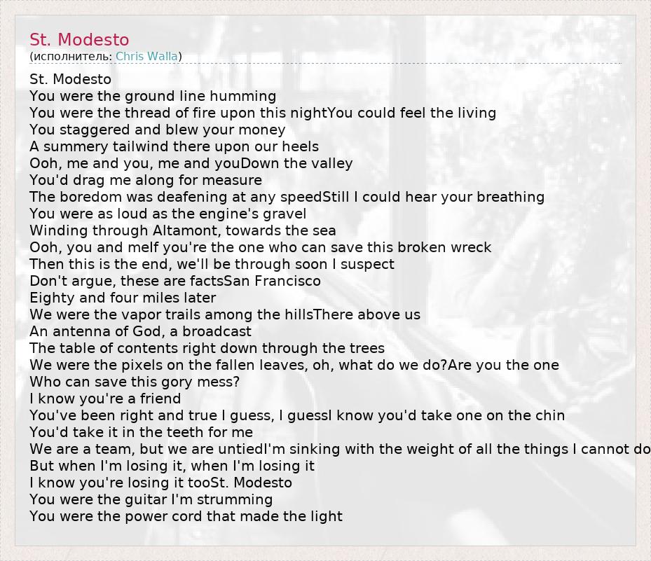 А как ты думаешь, о чем песня "St. Modesto" ?