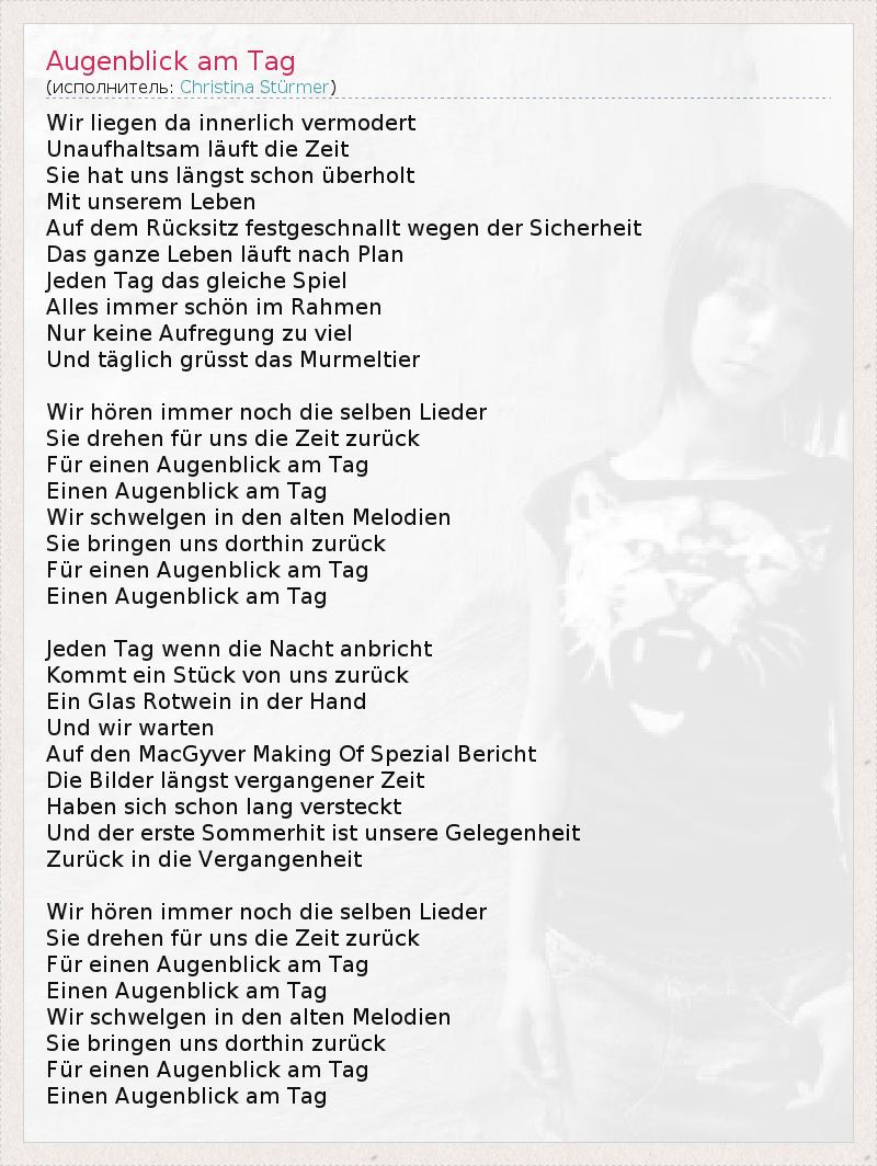 А как ты думаешь, о чем песня "Augenblick am Tag" ?