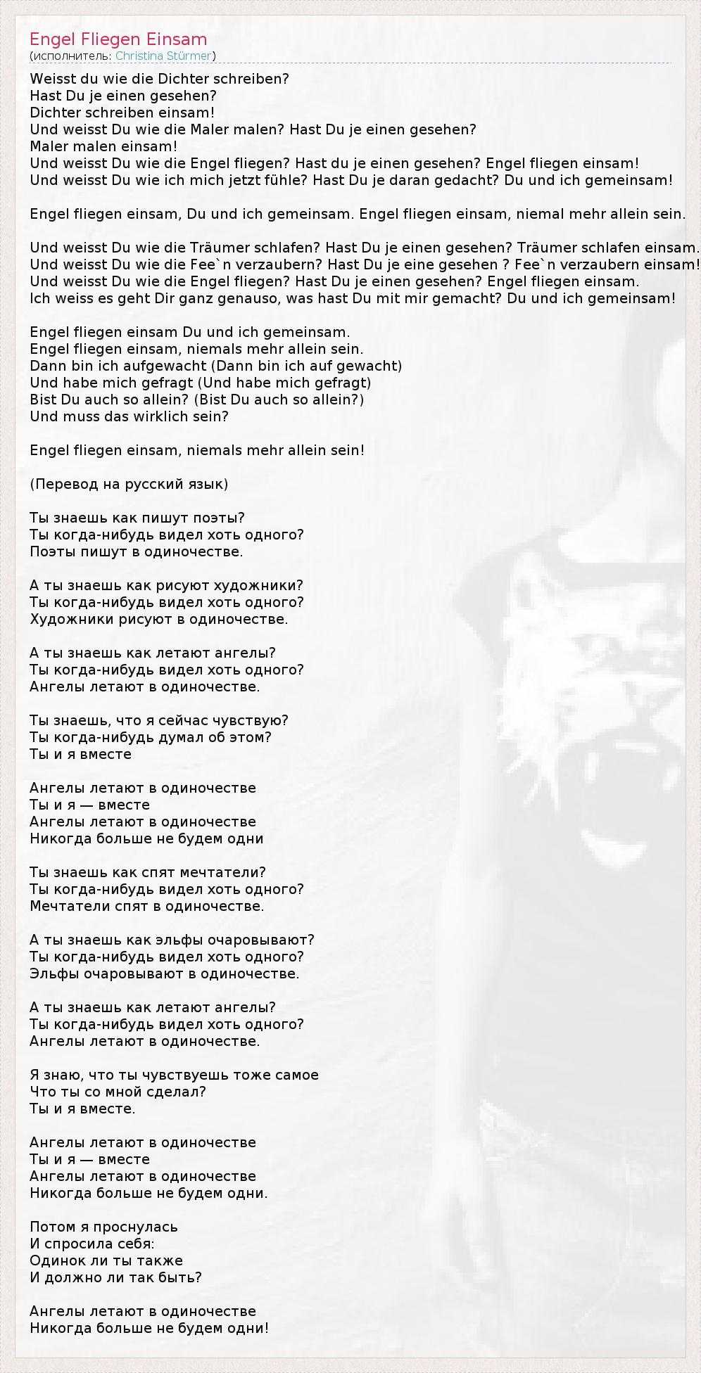 А как ты думаешь, о чем песня "Engel Fliegen Einsam" ?