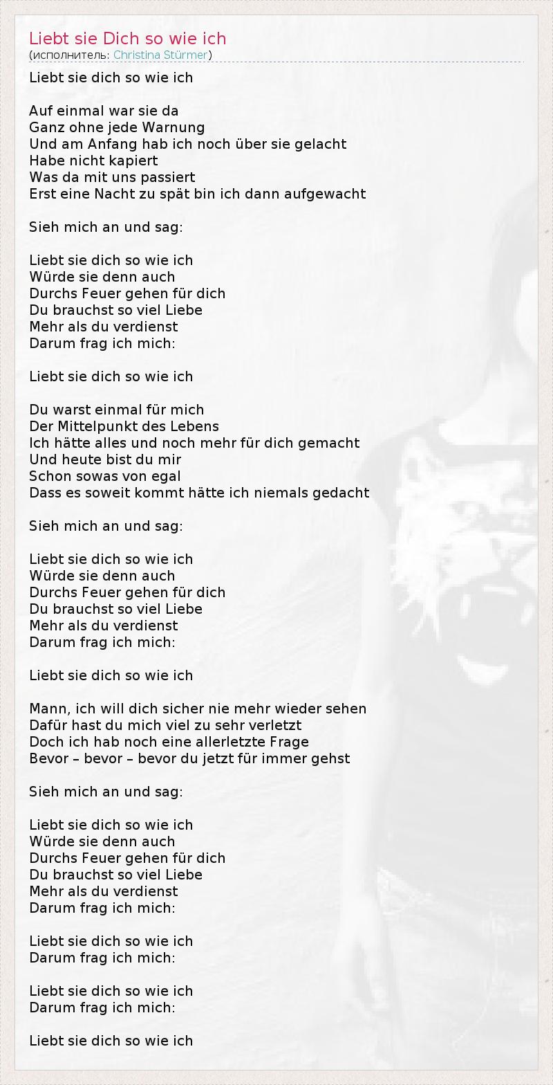 А как ты думаешь, о чем песня "Liebt sie Dich so wie ich" ?
