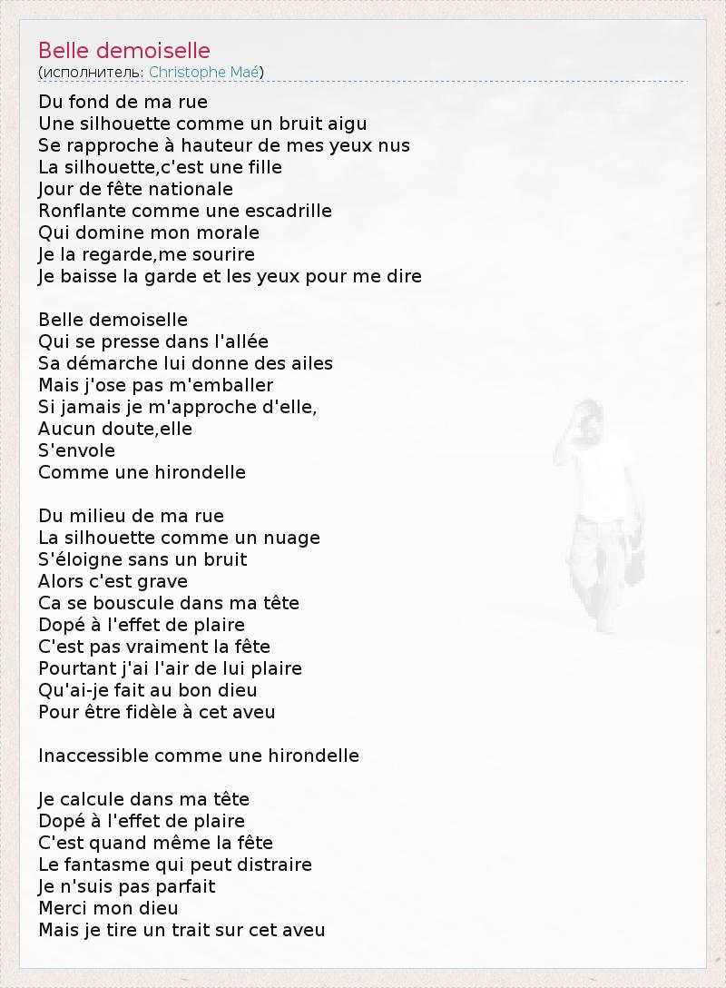 А как ты думаешь, о чем песня "Belle demoiselle" ?