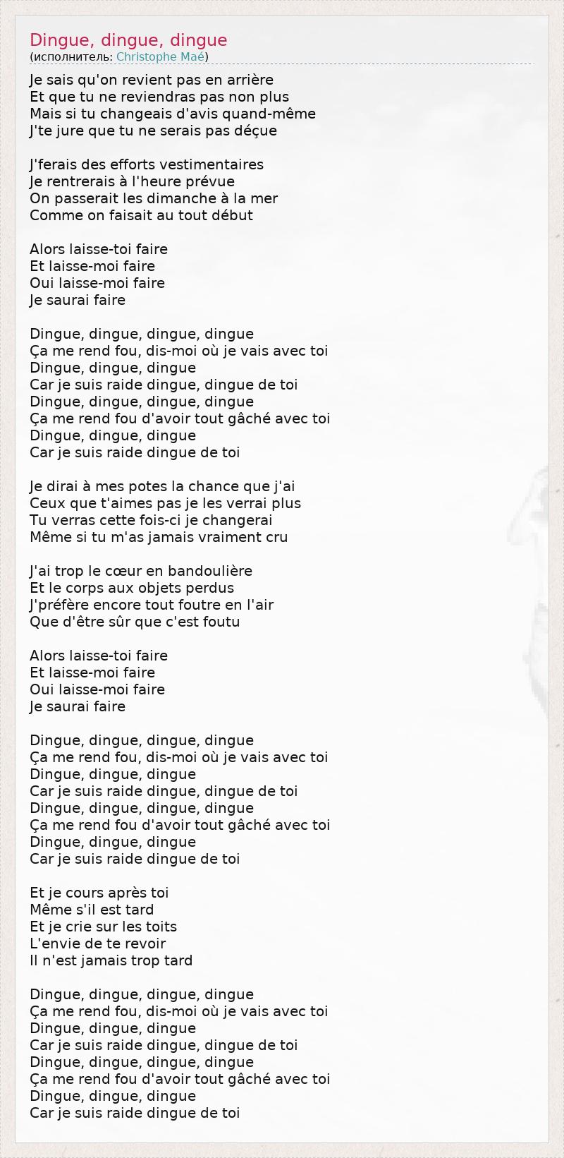 А как ты думаешь, о чем песня "Dingue, dingue, dingue" ?