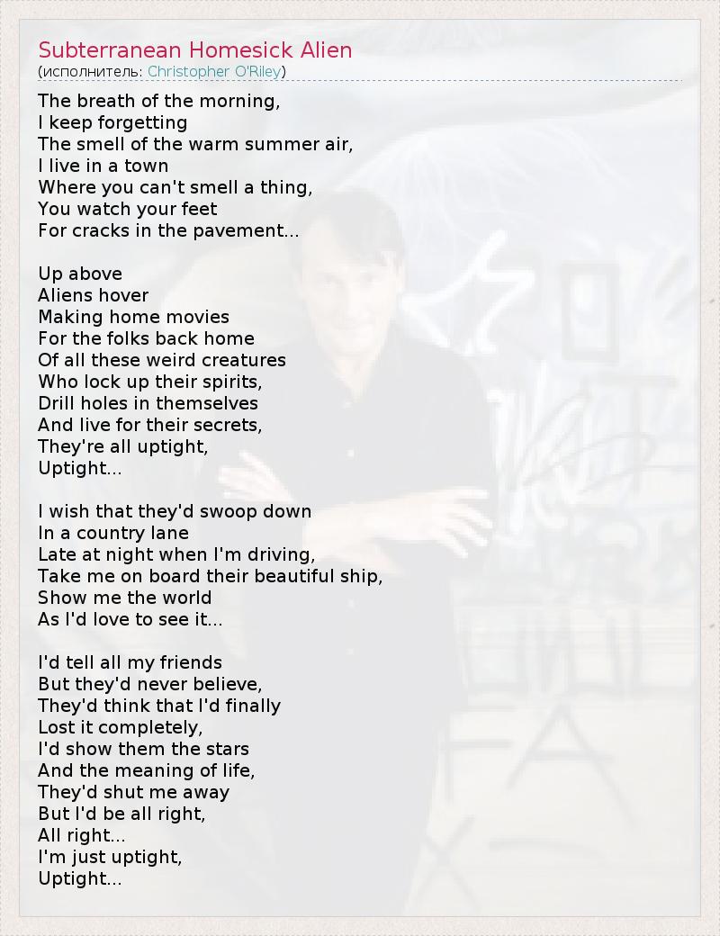 А как ты думаешь, о чем песня "Subterranean Homesick Alien" ?