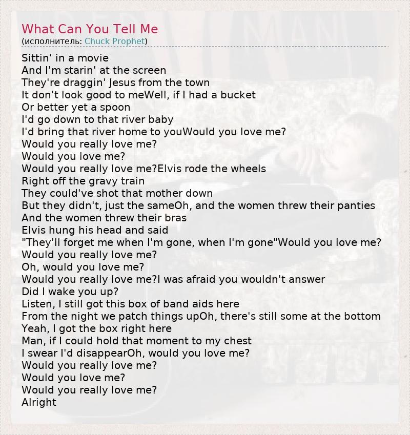 А как ты думаешь, о чем песня "What Can You Tell Me" ?