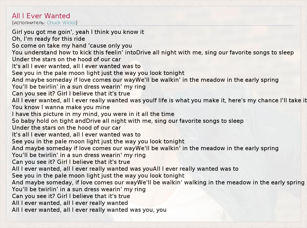 А как ты думаешь, о чем песня "All I Ever Wanted" ?