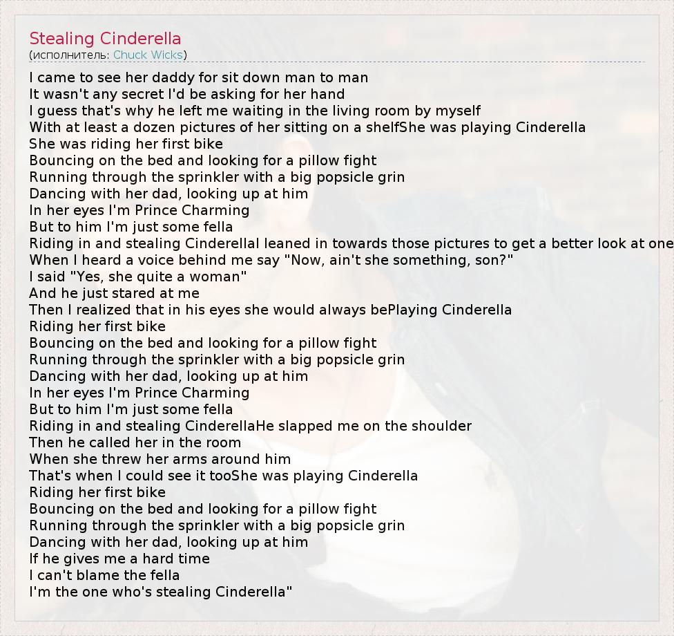 А как ты думаешь, о чем песня "Stealing Cinderella" ?