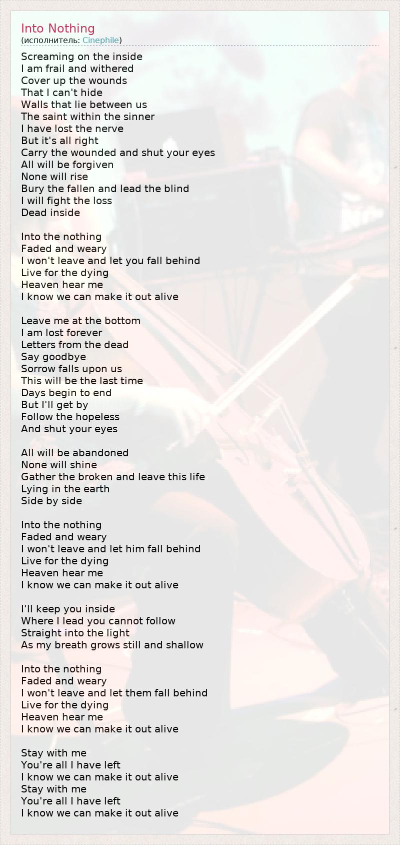 А как ты думаешь, о чем песня "Into Nothing" ?