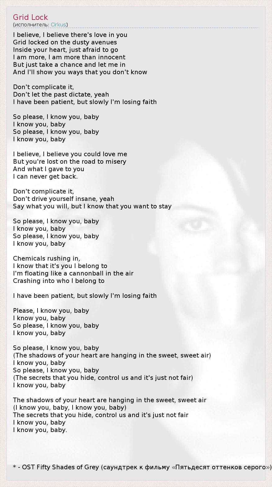А как ты думаешь, о чем песня "Grid Lock" ?