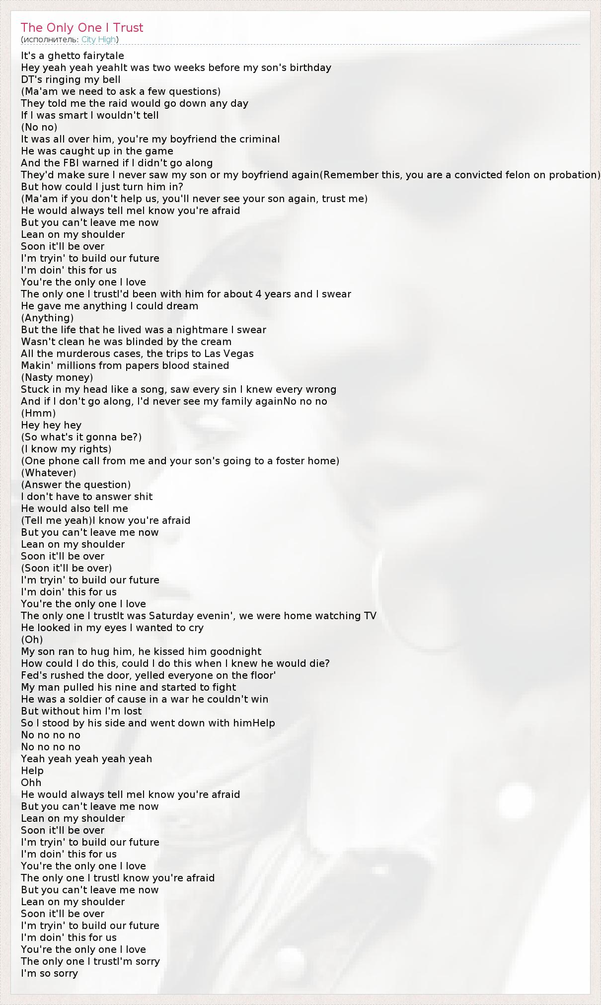 А как ты думаешь, о чем песня "The Only One I Trust" ?