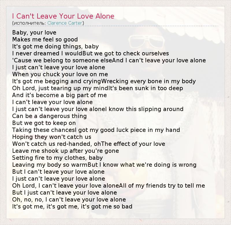 ГлавнаяИсполнителиClarence CarterI Can't Leave Your Love Alone
