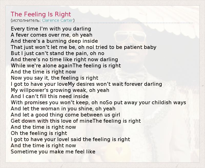 А как ты думаешь, о чем песня "The Feeling Is Right" ?