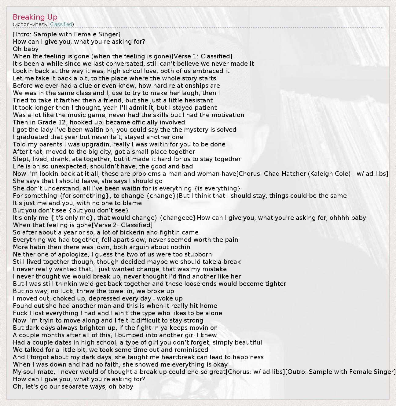 А как ты думаешь, о чем песня "Breaking Up" ?