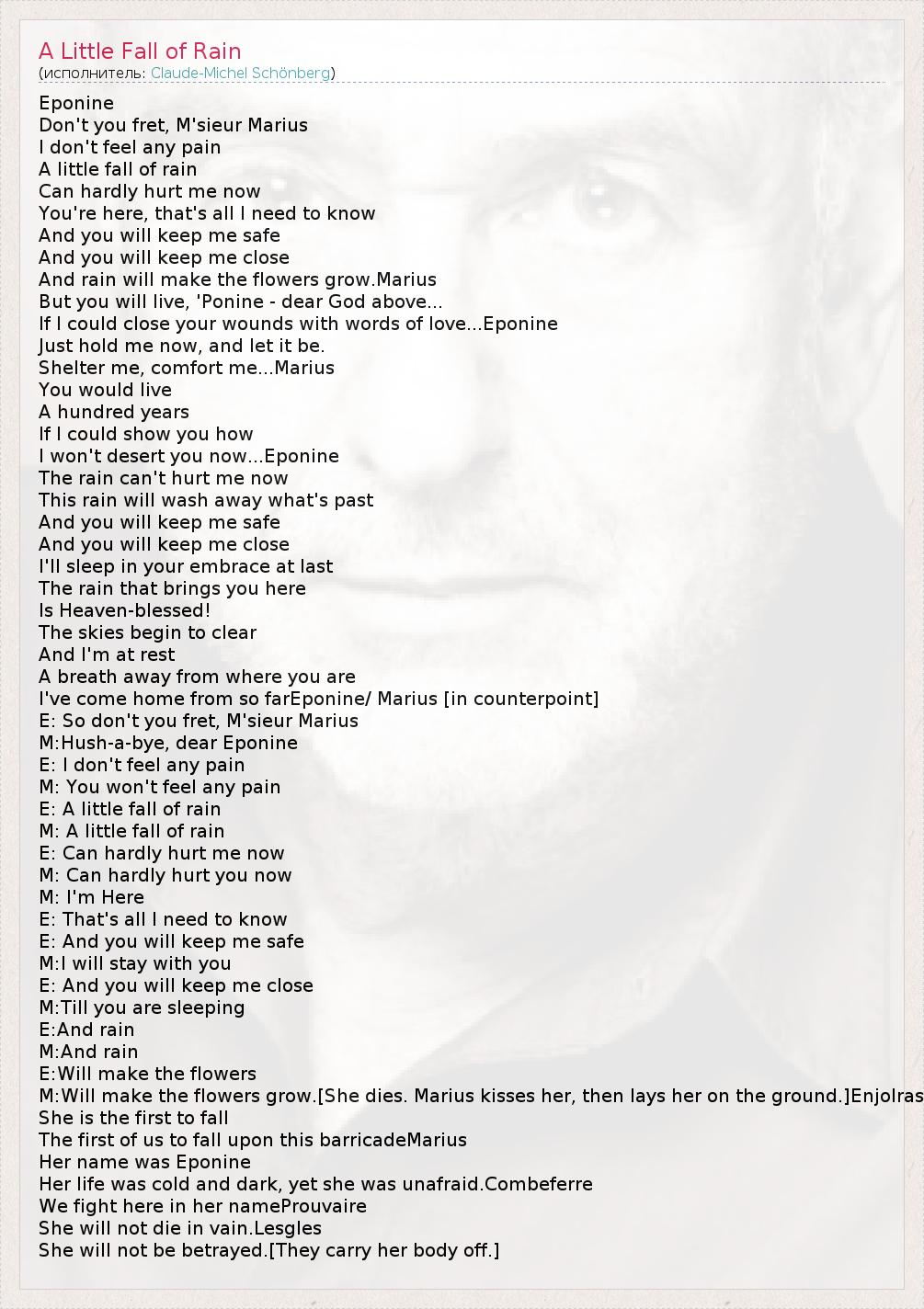 А как ты думаешь, о чем песня "A Little Fall of Rain" ?