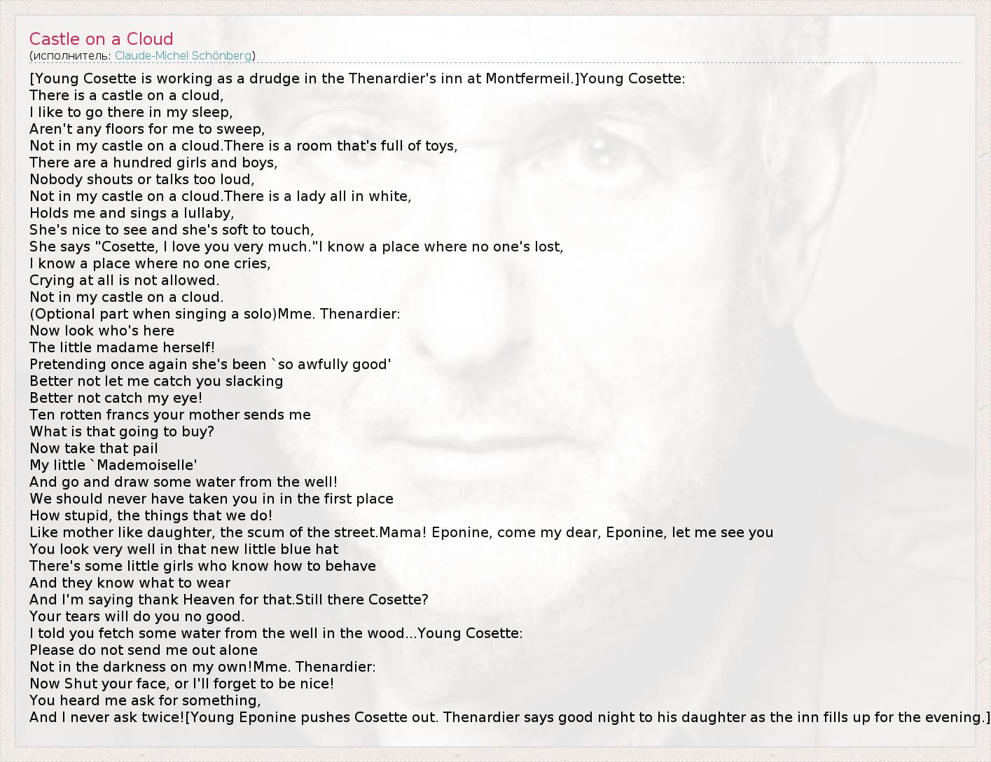 А как ты думаешь, о чем песня "Castle on a Cloud" ?