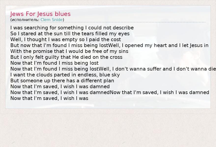 А как ты думаешь, о чем песня "Jews For Jesus blues" ?