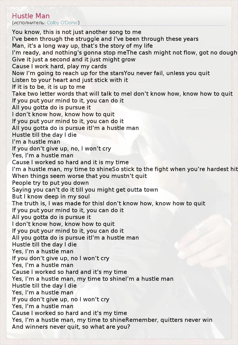 А как ты думаешь, о чем песня "Hustle Man" ?