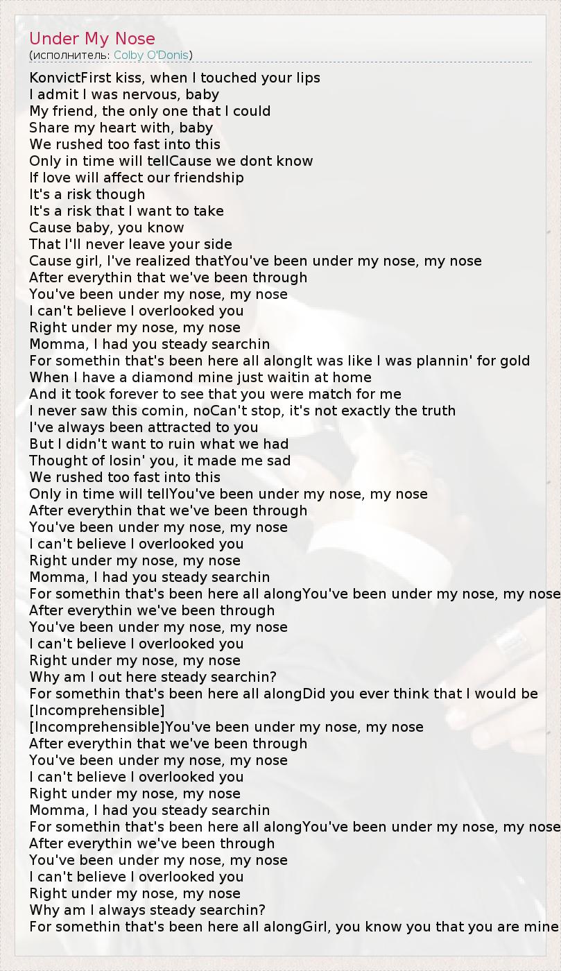 Cause girl, I've realized thatYou've been under my nose, my nose