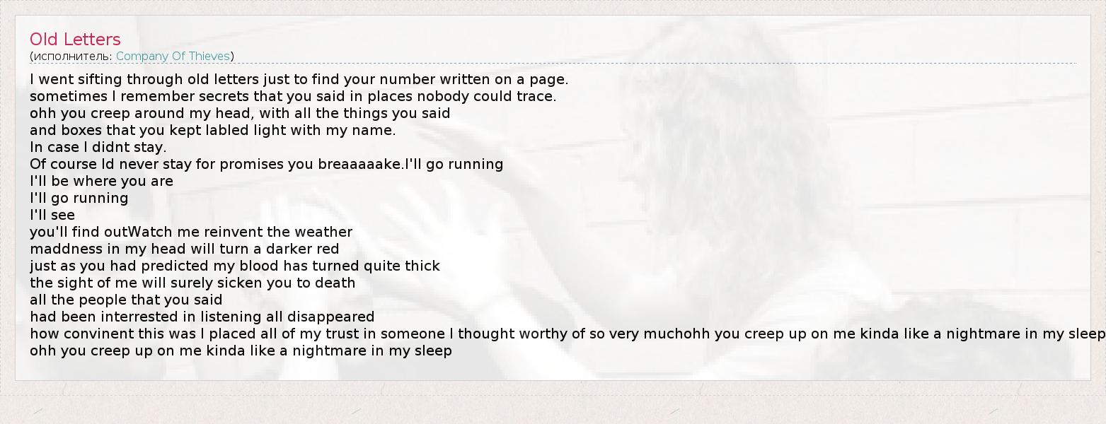 А как ты думаешь, о чем песня "Old Letters" ?