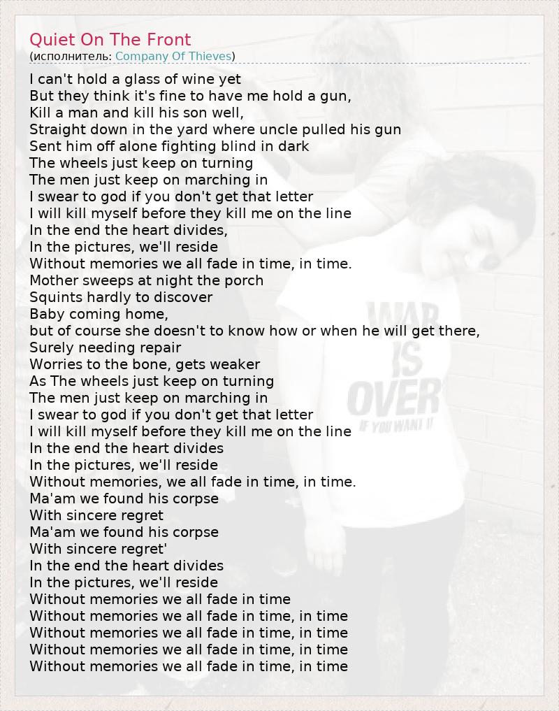 А как ты думаешь, о чем песня "Quiet On The Front" ?