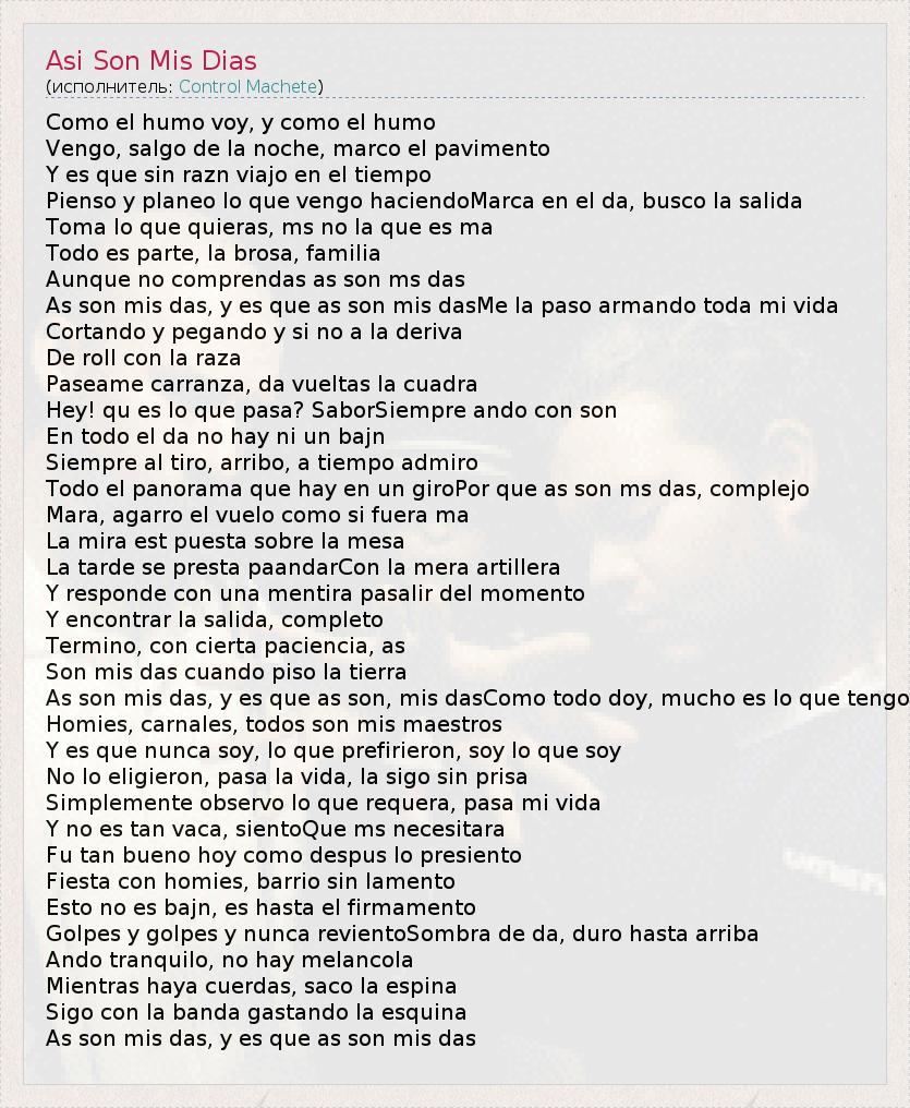 А как ты думаешь, о чем песня "Asi Son Mis Dias" ?
