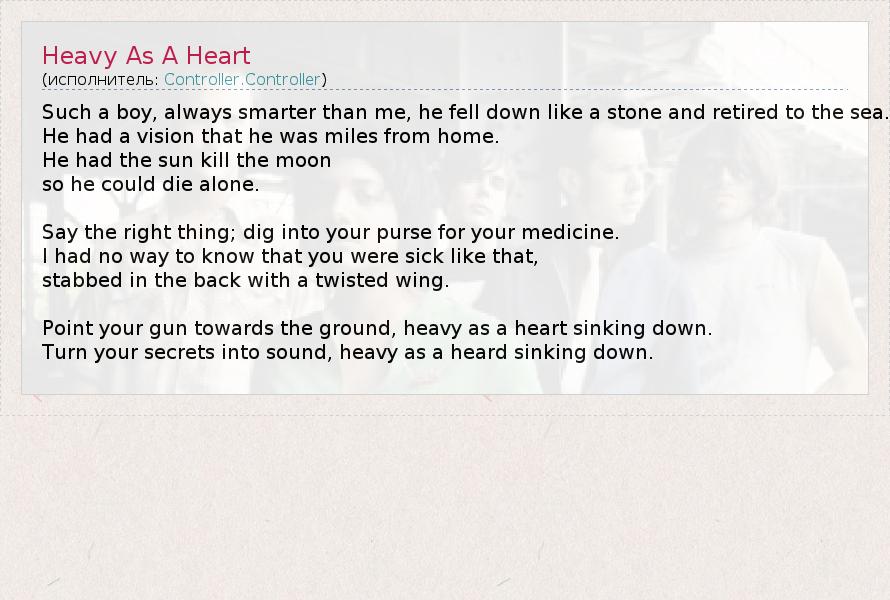 А как ты думаешь, о чем песня "Heavy As A Heart" ?