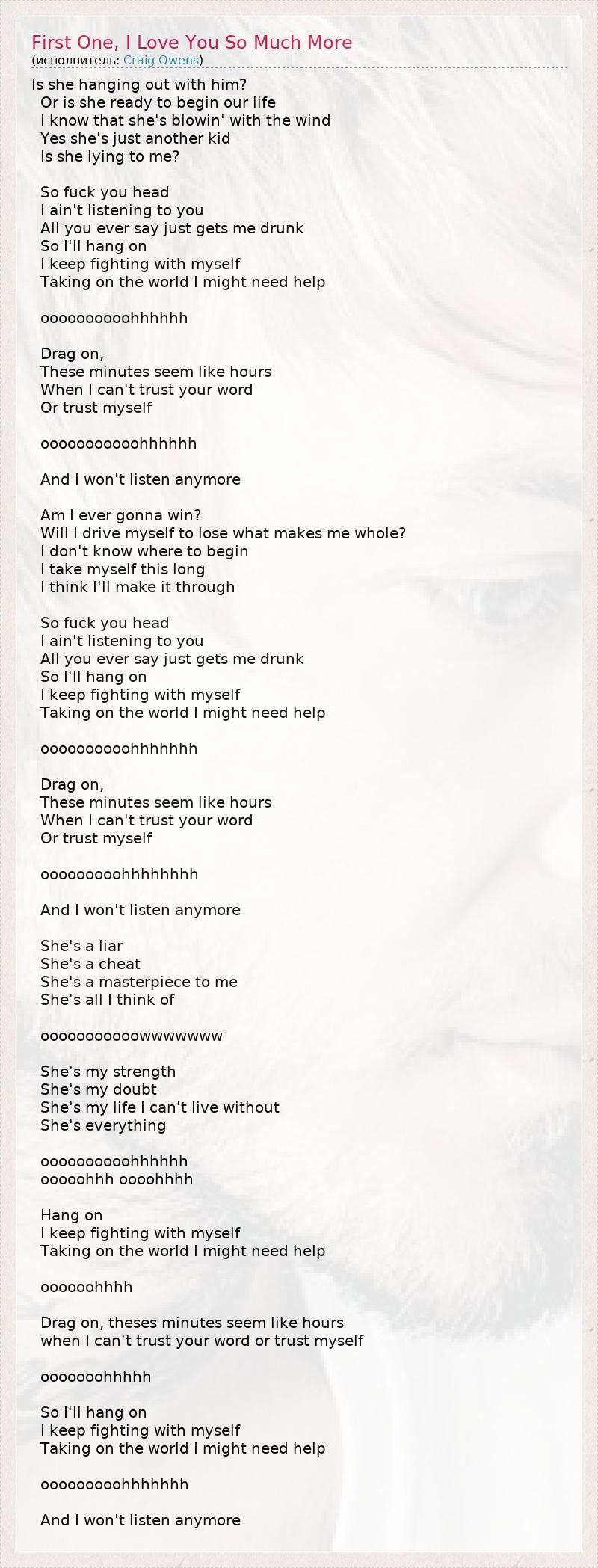ГлавнаяИсполнителиCraig OwensFirst One, I Love You So Much More