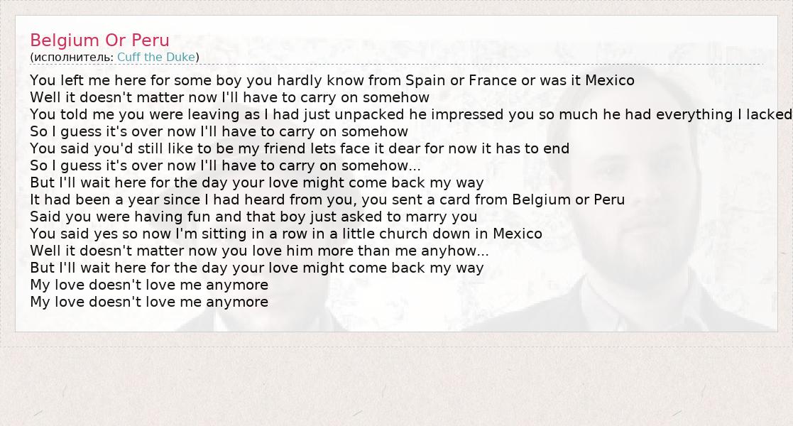 А как ты думаешь, о чем песня "Belgium Or Peru" ?