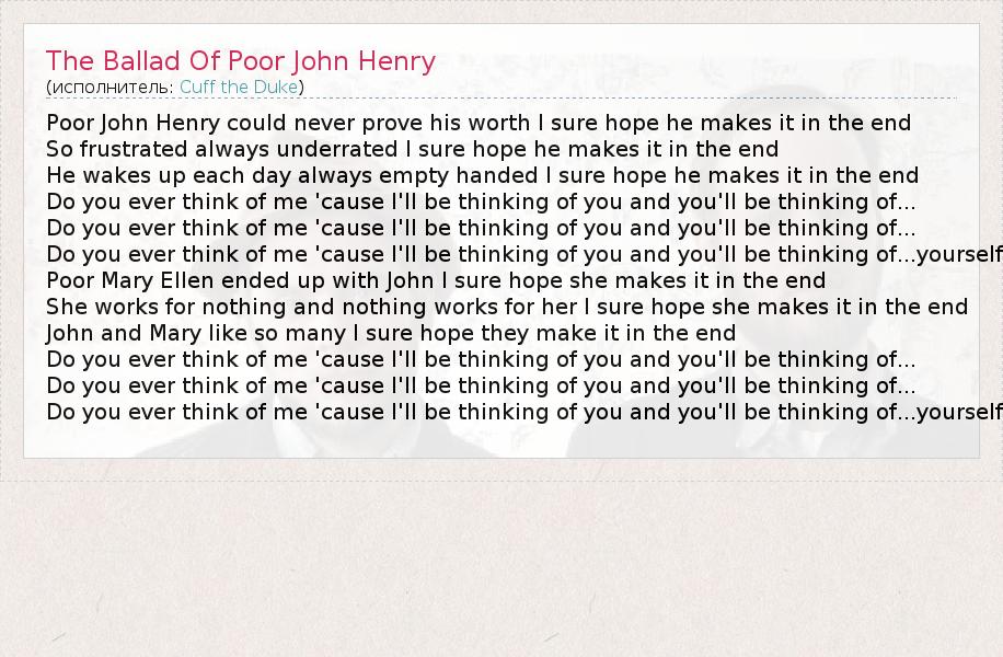 А как ты думаешь, о чем песня "The Ballad Of Poor John Henry" ?