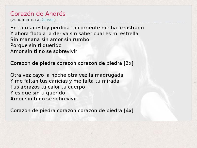 А как ты думаешь, о чем песня "Corazón de Andrés" ?
